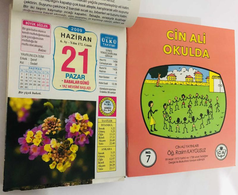 21 Haziran 2009 hediyelik orijinal Ülkü takvim yaprağı (Cin Ali kitabı hediyeli:) başlıklı ürün, Efemera, Müzik, Sinema > Belge ve Evraklar > Takvimler kategorisi altında İkinci El olarak satılmaktadır.