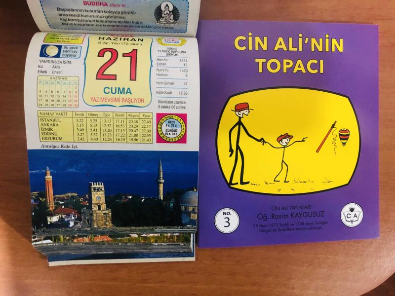 21 Haziran 2013 hediyelik orijinal Ülkü takvim yaprağı (Cin Ali kitabı hediyeli:) başlıklı ürün, Efemera, Müzik, Sinema > Belge ve Evraklar > Takvimler kategorisi altında İkinci El olarak satılmaktadır.