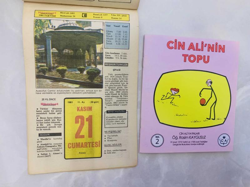 21 Kasım 1981 hediyelik orijinal Hürriyet takvim yaprağı (Cin Ali kitabı hediyeli:), en son 7 ay önce güncellenmiştir.
