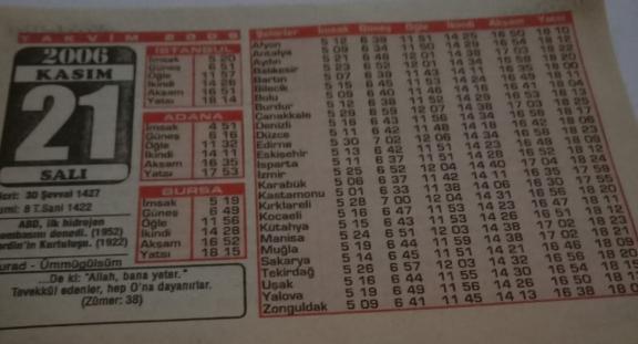 21 Kasım 2006-Orijinal Takvim Yaprağı-Doğum Günü-Söz,Nişan,Nikâh,Düğün ve Önemli Günler Hediyesi-Bizim Anadolu Takvimleri-Ayet(Zümer:38)-ABD,ilk hidrojen bombasını denedi(1952)-Murad,Ümmügülsüm-Suyun Kulağı Var, en son 2 ay önce güncellenmiştir.