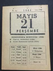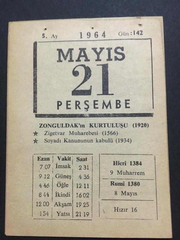 21 MAYIS 1964-TAKVİM YAPRAĞI-DOĞUM GÜNÜ HEDİYESİ,ZONGULDAKIN KURTULUŞU,1920,ZİGETVAR MUHAREBESİ 1566SOYADI KANUNUN KABULÜ 1934,, en son 8 ay önce güncellenmiştir.