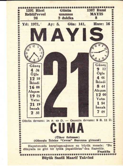 21 MAYIS 1971 SAATLİ MAARİF TAKVİMİ, en son 2 yıl önce güncellenmiştir.