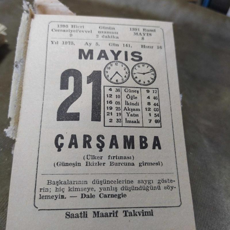 21 MAYIS 1975 SAATLİ MAARİF TAKVİM YAPRAĞI, en son 1 yıl önce güncellenmiştir.