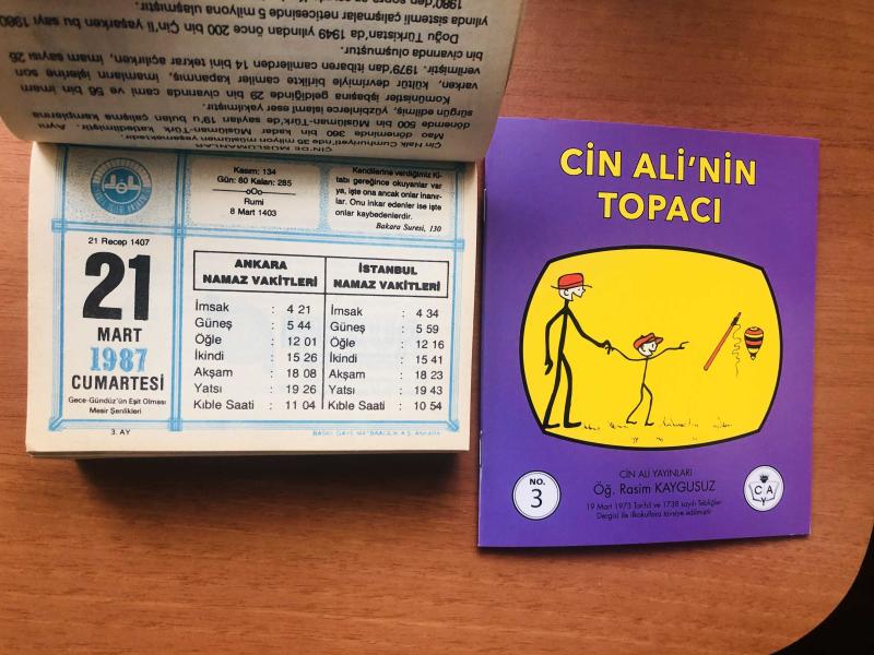 21 Mart 1987 hediyelik orijinal Diyanet takvim yaprağı (Cin Ali kitabı hediyeli:) başlıklı ürün, Efemera, Müzik, Sinema > Belge ve Evraklar > Takvimler kategorisi altında İkinci El olarak satılmaktadır.