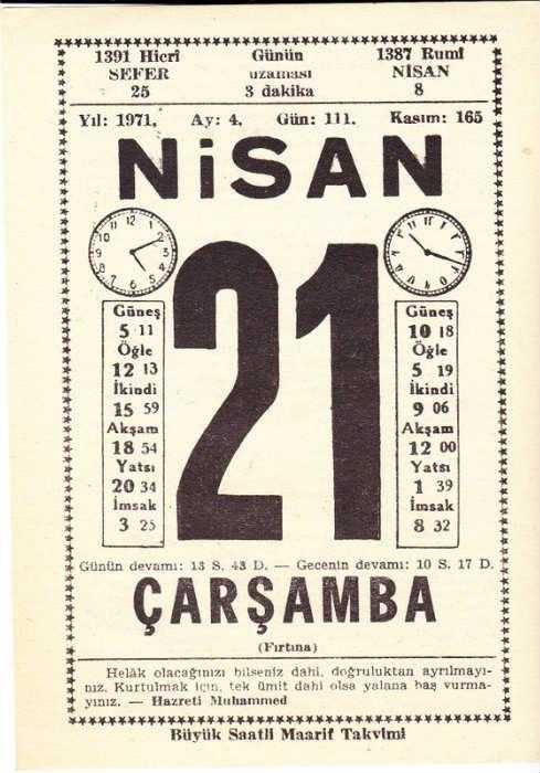 21 NİSAN 1971 SAATLİ MAARİF TAKVİMİ YAPRAĞI, en son 1 yıl önce güncellenmiştir.