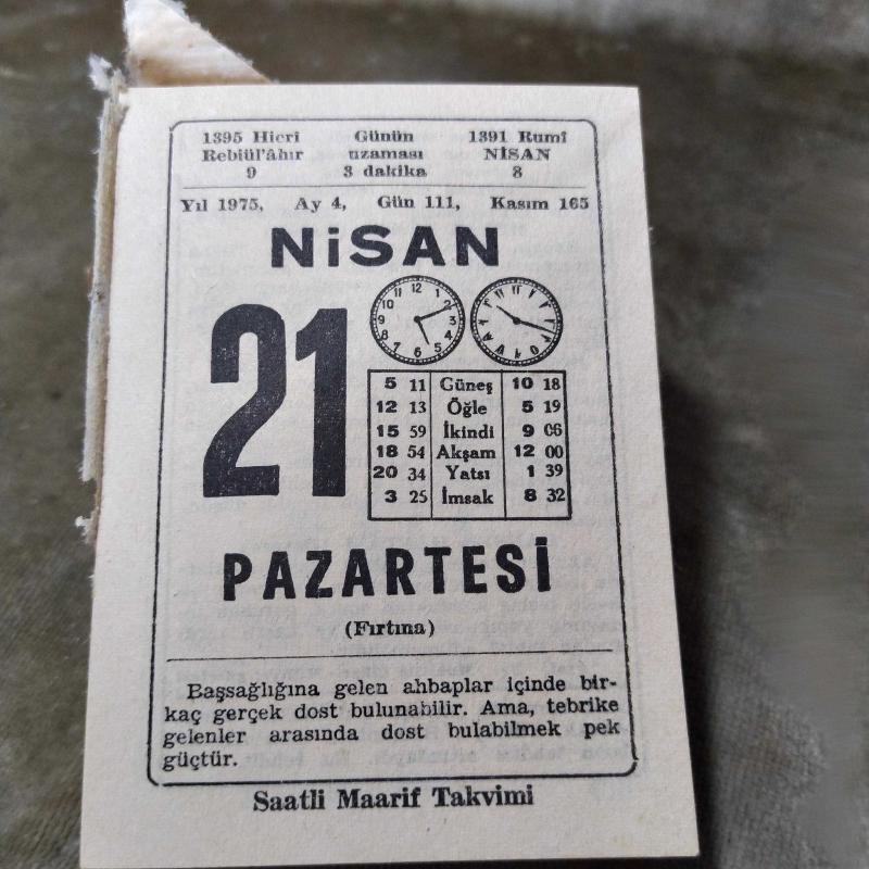 21 NİSAN 1975 SAATLİ MAARİF TAKVİM YAPRAĞI, en son 1 yıl önce güncellenmiştir.
