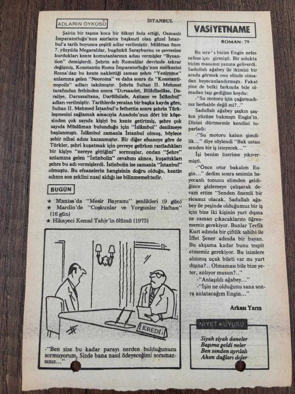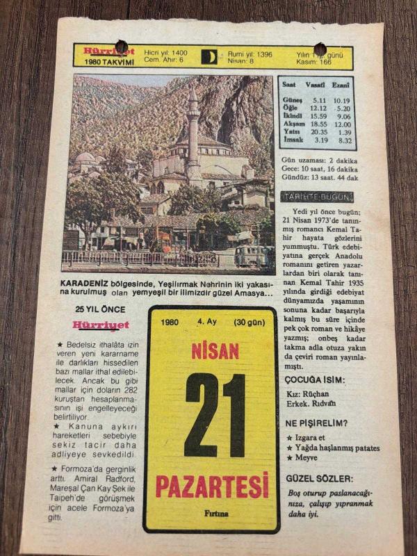 21 NİSAN 1980 - TAKVİM YAPRAĞI - DOĞUM GÜNÜ HEDİYESİ - HÜRRİYET TAKVİMİ - VASİYETNAME ADLI ROMAN - Mardin'de "Coşkunlar ve Yorgunlar Haftası" - Hikayeci Kemal Tahir'in ölümü (1973), en son 8 ay önce güncellenmiştir.