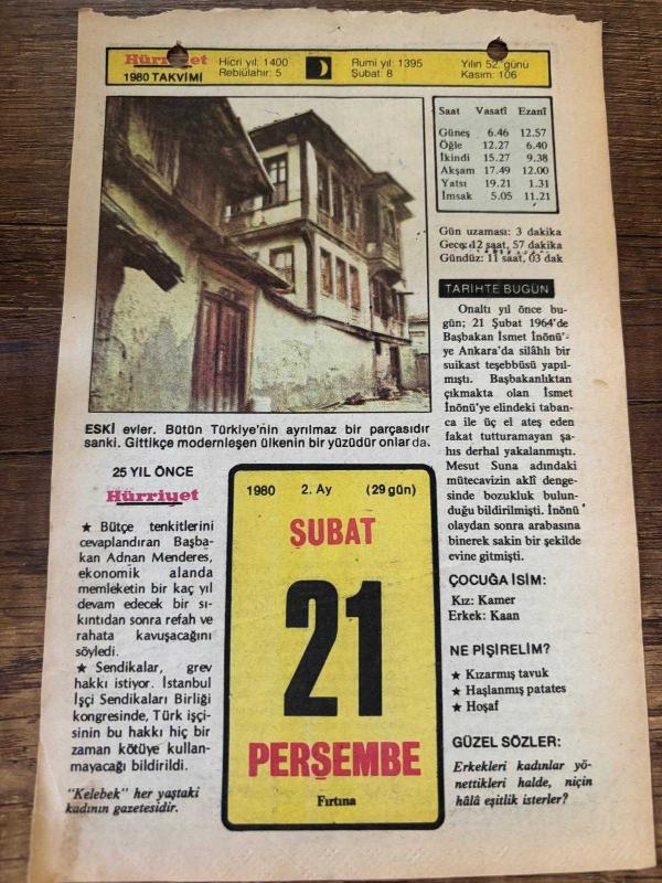 21 ŞUBAT 1980 - TAKVİM YAPRAĞI - DOĞUM GÜNÜ HEDİYESİ - HÜRRİYET TAKVİMİ - VASİYETNAME ADLI ROMAN - Gümüşhane'nin ilçesi Bayburt'un kurtuluşu - "Amasya" şilebinin Biskav körfezinde batışı, 3 ay önce satışa sunulmuştur.