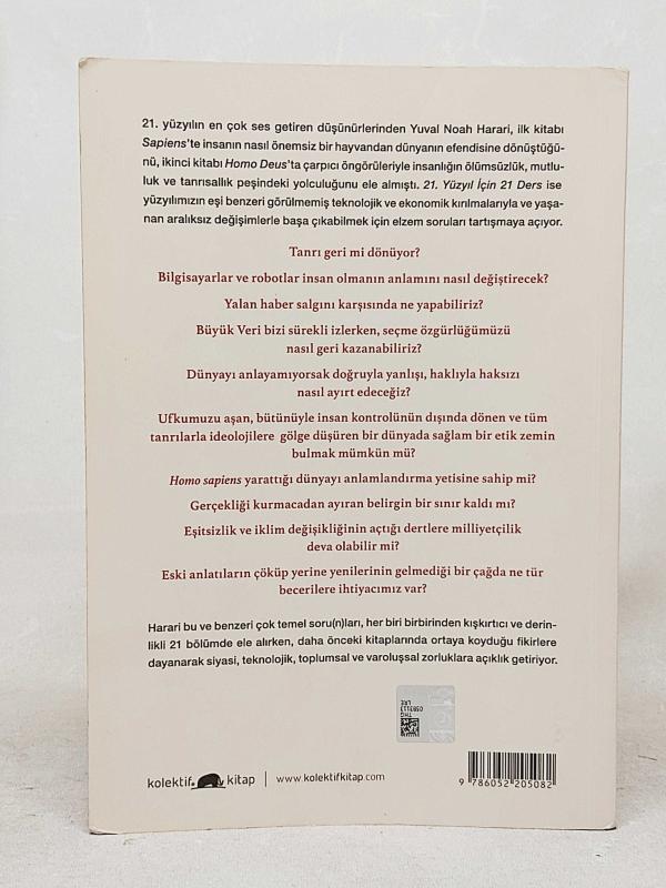21. Yüzyıl İçin 21 Ders - 1. BASKI, Yuval Noah Harari tarafından kaleme alınmıştır. Kitap 2018 yılında Kolektif Kitap tarafından [İstanbul] yayınlanmıştır. Bu baskının çevirisi Selin Siral tarafından yapılmıştır. 331 sayfadır. 21. Yüzyıl İçin 21 Ders - 1. BASKI adlı eser Türkçe dilindedir.
