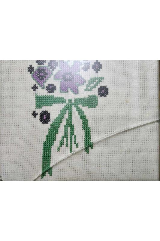 21x34 Çerçevesinde Etamin Duvar Panosu.; Kumaş üzeri el ișleme.; Orijinal dönemine ait camı kırık çerçevesinde