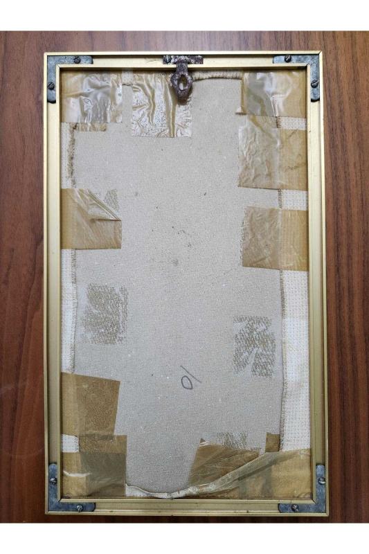 21x34 Çerçevesinde Etamin Duvar Panosu. Kumaş üzeri el ișleme. Orijinal başlıklı antika/koleksiyon objesinin menşei belirtilmemiştir. Objenin ait olduğu dönem bilinmeketedir.