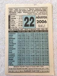 22 AĞUSTOS 2006-TAKVİM YAPRAĞI-DOĞUM GÜNÜ HEDİYESİ-FAZİLET TAKVİMİ, en son 8 ay önce güncellenmiştir.