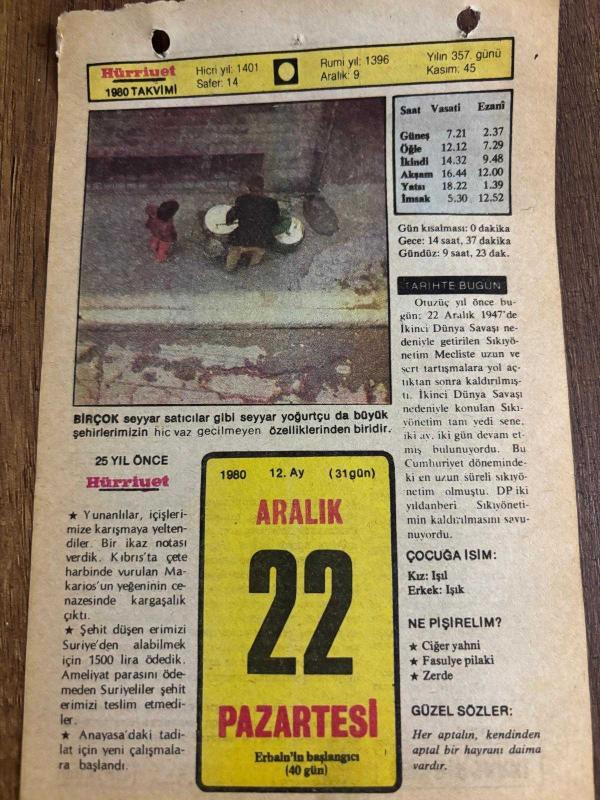 22 ARALIK 1980 - TAKVİM YAPRAĞI - DOĞUM GÜNÜ HEDİYESİ - HÜRRİYET TAKVİMİ - ESKİ BİR ŞARKI ADLI ROMAN - 3. Murat'ın tahta çıkışı - Yedi yıl süren sıkıyönetimin İstanbul'dan kalkışı, 5 ay önce satışa sunulmuştur.