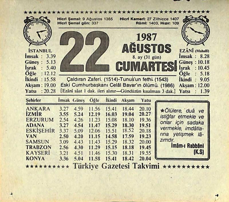 22 Ağustos 1987 Takvim Yaprağı - Doğum Günü Hediyesi EFMN13865, en son 21 gün önce güncellenmiştir.