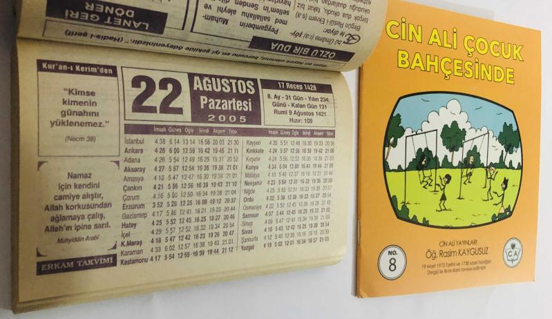 22 Ağustos 2005 hediyelik orijinal Erkam takvim yaprağı (Cin Ali kitabı hediyeli:) başlıklı ürün, Efemera, Müzik, Sinema > Belge ve Evraklar > Takvimler kategorisi altında İkinci El olarak satılmaktadır.
