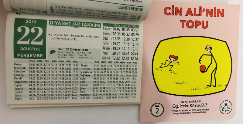22 Ağustos 2019 hediyelik orijinal Diyanet takvim yaprağı (Cin Ali kitabı hediyeli:), 3 yıl önce satışa sunulmuştur.