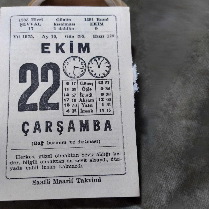 22 EKİM 1975 SAATLİ MAARİF TAKVİM YAPRAĞI, en son 1 yıl önce güncellenmiştir.