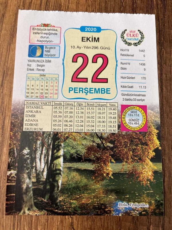 22 EKİM 2020 - TAKVİM YAPRAĞI - DOĞUM GÜNÜ HEDİYESİ - BÜYÜK SAATLİ MAARİF TAKVİMİ - Bolu, Yedigöller - SAMOS - YOK OLMA TEHLİKESİ - HENRYWADSWORTH LONGFELLOW - 1920 - Digor (Kars), Rus işgalinden kurtuldu - 1927 - Kayseri'de kurulan, Türkiye'nin ilk uçak fabrikası TOMTAŞ, uçak üretimine başladı - 1931 - Amerikalı ünlü mafya babası AI Capone, Chicago'da vergi kaçakçılığından 11 yıl hapse mahkûm oldu başlıklı ürün, Efemera, Müzik, Sinema > Belge ve Evraklar > Takvimler kategorisi altında İkinci El olarak satılmaktadır.