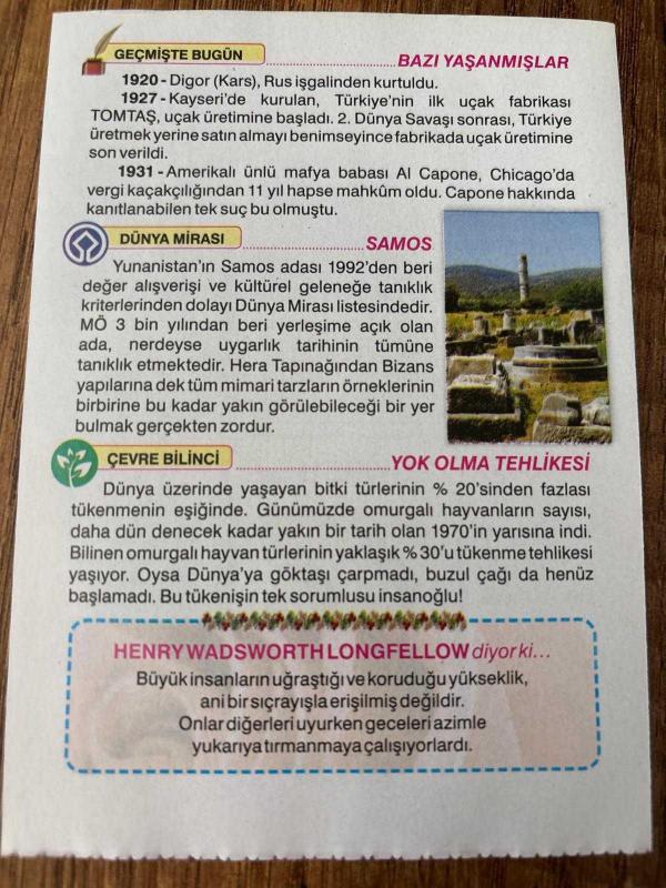22 EKİM 2020 - TAKVİM YAPRAĞI - DOĞUM GÜNÜ HEDİYESİ - BÜYÜK SAATLİ MAARİF TAKVİMİ - Bolu, Yedigöller - SAMOS - YOK OLMA TEHLİKESİ - HENRYWADSWORTH LONGFELLOW - 1920 - Digor (Kars), Rus işgalinden kurtuldu - 1927 - Kayseri'de kurulan, Türkiye'nin ilk uçak fabrikası TOMTAŞ, uçak üretimine başladı - 1931 - Amerikalı ünlü mafya babası AI Capone, Chicago'da vergi kaçakçılığından 11 yıl hapse mahkûm oldu, en son 8 ay önce güncellenmiştir.
