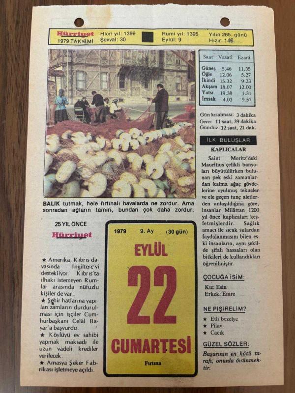 22 EYLÜL 1979 - TAKVİM YAPRAĞI - DOĞUM GÜNÜ HEDİYESİ - HÜRRİYET TAKVİMİ - PİS BİR İŞ ROMANI - Afyon'da Emirdağ'ın ve Çanakkale'de Ezine' nin "Kurtuluş günü" - Yavuz Sultan Selim'in ölümü (1520) başlıklı ürün, Efemera, Müzik, Sinema > Belge ve Evraklar > Takvimler kategorisi altında İkinci El olarak satılmaktadır.
