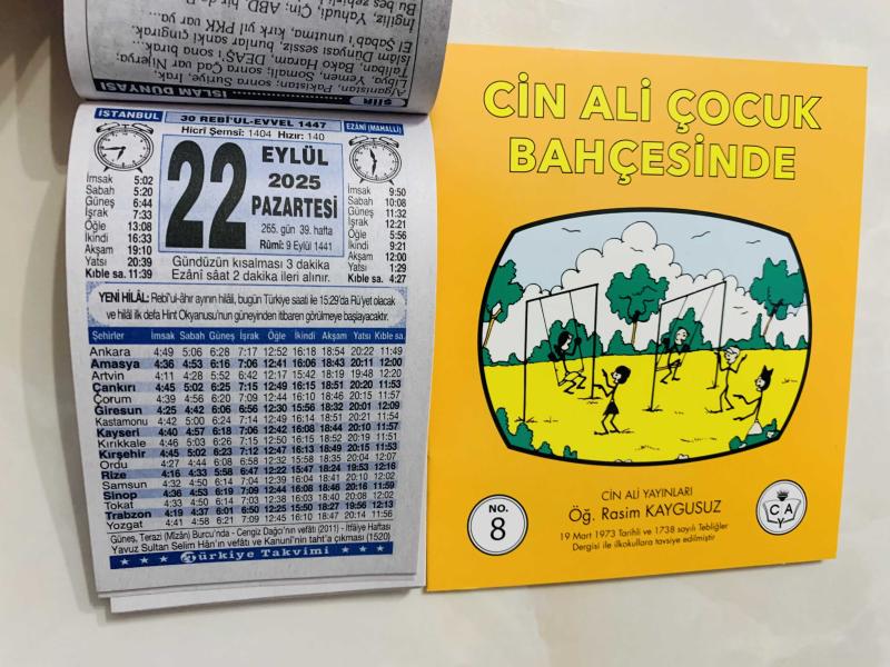 22 Eylül 2025 hediyelik orijinal Türkiye takvim yaprağı (Cin Ali kitabı hediyeli:), en son 7 ay önce güncellenmiştir.