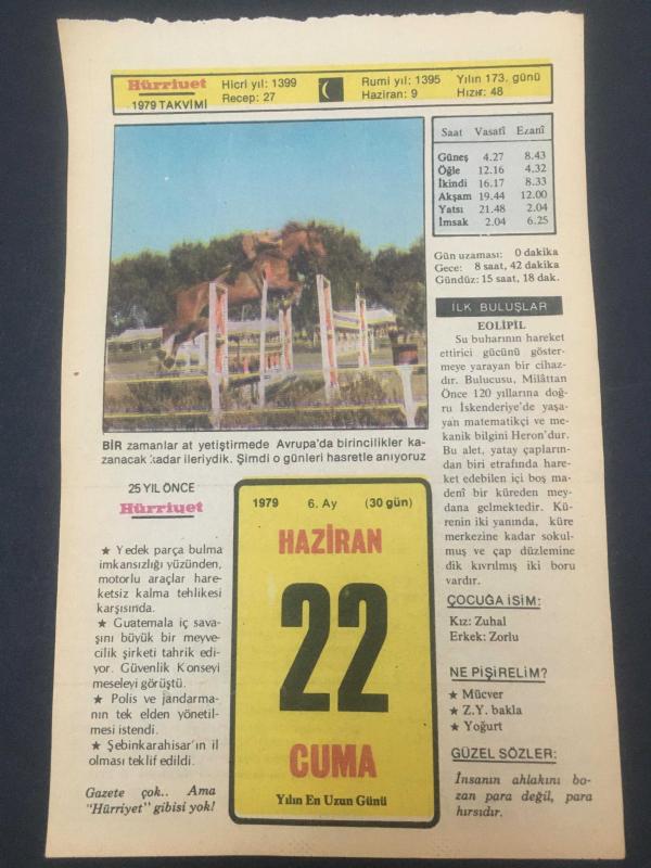 22 HAZİRAN 1979 -TAKVİM YAPRAĞI-DOĞUM GÜNÜ HEDİYESİ-HÜRRİYET TAKVİMİ,ÇOCUĞA İSİM,BİR SOHBET BEKLETMEYİN,SAPANCANIN KURTULUŞ GÜNÜ MONTREUX KONFERANSI NIN TOPLANMASI 1936,2.AHMETİN TAHTA ÇIKIŞI 1961, en son 8 ay önce güncellenmiştir.
