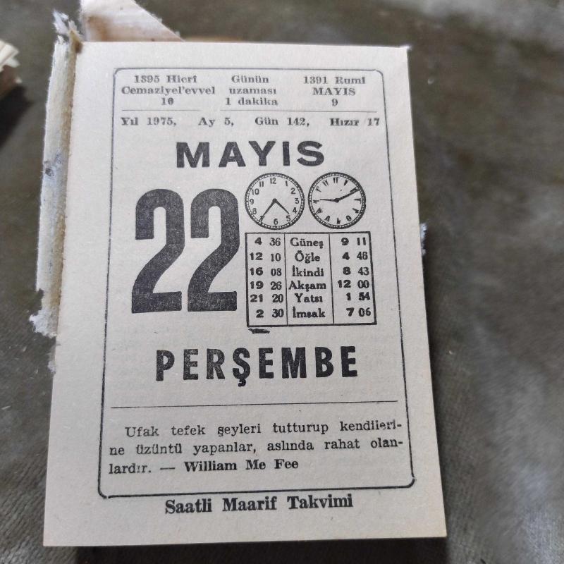 22 MAYIS 1975 SAATLİ MAARİF TAKVİM YAPRAĞI, en son 1 yıl önce güncellenmiştir.