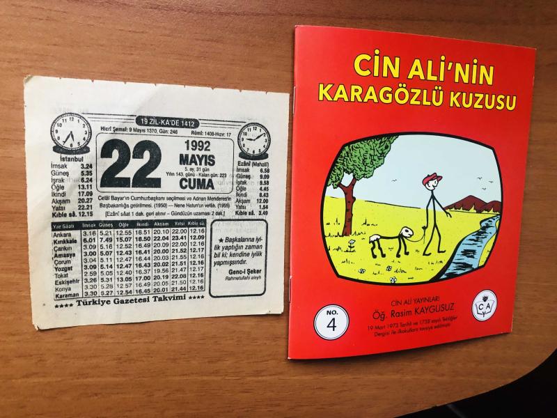 22 Mayıs 1992 orijinal Türkiye gazetesi takvim yaprağı (Cin Ali kitabı hediyeli:) başlıklı ürün, Efemera, Müzik, Sinema > Belge ve Evraklar > Takvimler kategorisi altında İkinci El olarak satılmaktadır.