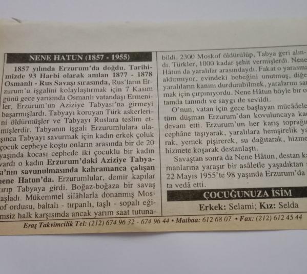 22 Mayıs 2006-Orijinal Takvim Yaprağı-Doğum Günü-Söz,Nişan,Nikâh,Düğün ve Önemli Günler Hediyesi-ERAŞ Hizmet Takvimi-Ayet-Hadis(Nene Hatun'un Vefatı (1955))-Nene Hatun(1857-1955)-Çocuğunuza İsim:Selami,Selda başlıklı ürün, Efemera, Müzik, Sinema > Belge ve Evraklar > Takvimler kategorisi altında İkinci El olarak satılmaktadır.