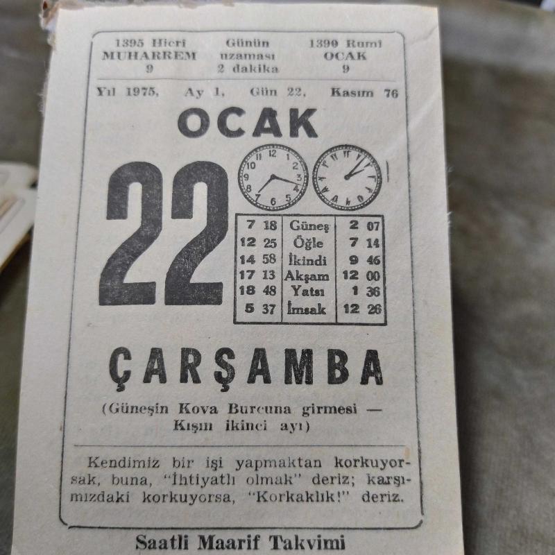 22 OCAK 1975 SAATLİ MAARİF TAKVİM YAPRAĞI, en son 1 yıl önce güncellenmiştir.