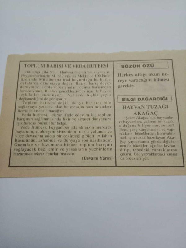 22 Şubat 1995-Orijinal Takvim Yaprağı-Doğum Günü-Söz,Nişan,Nikâh,Düğün ve Önemli Günler Hediyesi-Fatih Hak ve Hizmet Vakfı-Ayet/Hadis(Müslim/İmare:1839)-Toplum Barışı ve Veda Hutbesi-Sözün Özü-Hayvan Tuzağı Akağaç başlıklı ürün, Efemera, Müzik, Sinema > Belge ve Evraklar > Takvimler kategorisi altında İkinci El olarak satılmaktadır.