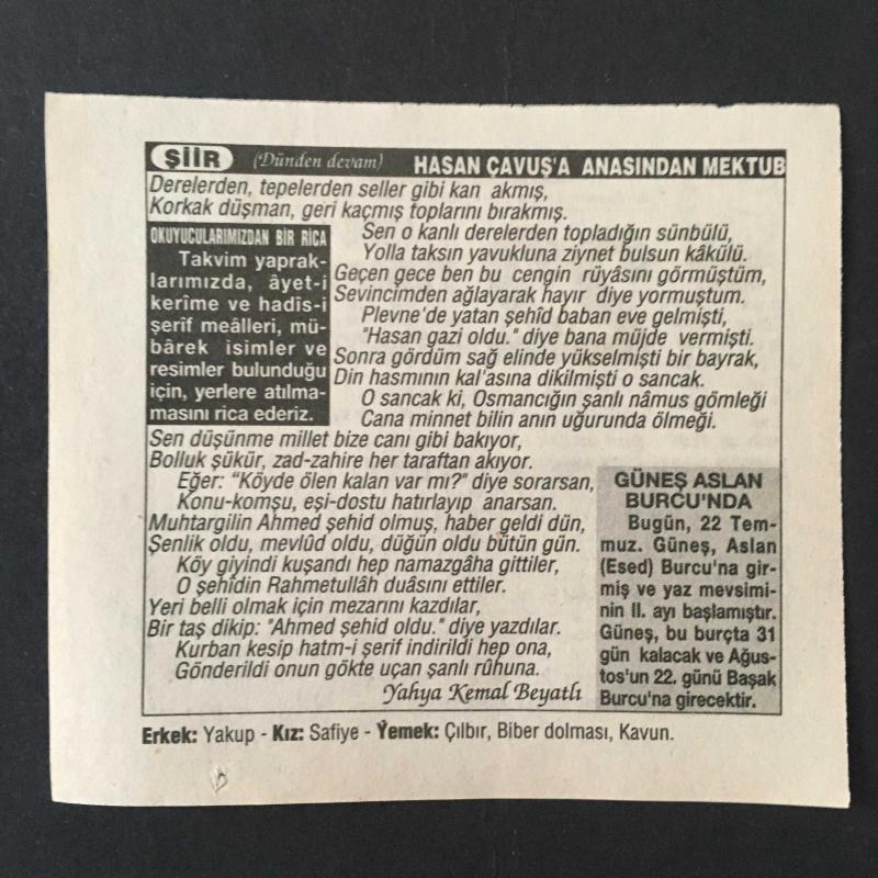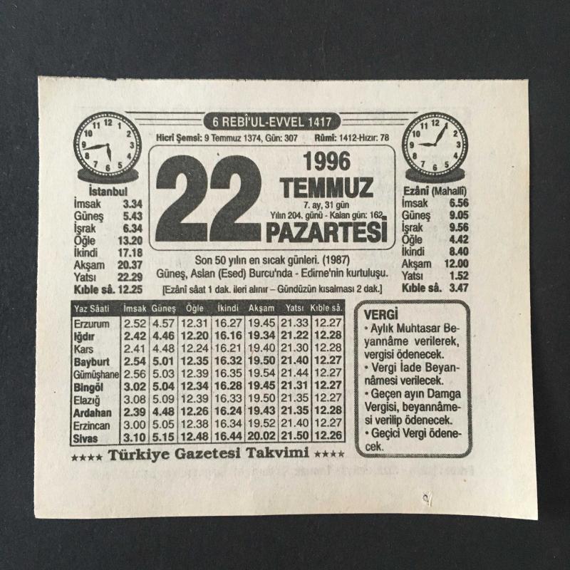22 TEMMUZ 1996 -TAKVİM YAPRAĞI-DOĞUM GÜNÜ HEDİYESİ-TÜRKİYE GAZETESİ TAKVİMİ,SON 50 YILIN EN SICAK GÜNLERİ 1987,GÜNEŞ ASLAN ESED BURCUNDA EDİRNENİN KURTULUŞU,HASAN ÇAVUŞA ANASINDAN MEKTUB, en son 8 ay önce güncellenmiştir.