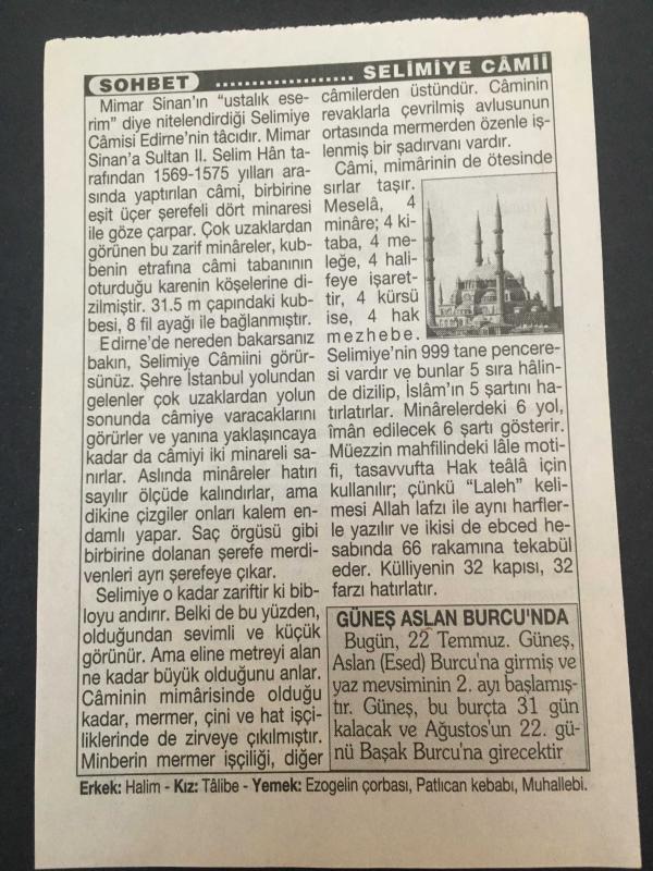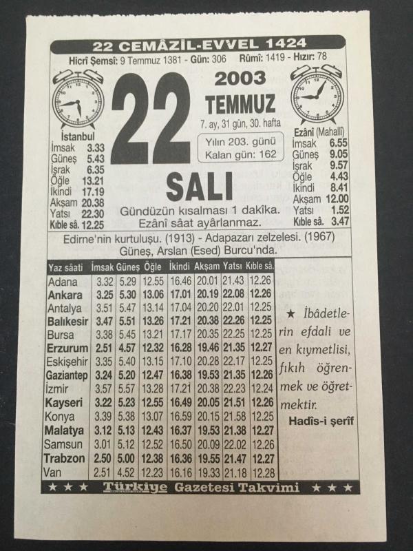 22 TEMMUZ 2003-TAKVİM YAPRAĞI-DOĞUM GÜNÜ HEDİYESİ-TÜRKİYE GAZETESİ TAKVİMİ,EDİRNENİN KURTULUŞU 1913,ADAPAZARI ZELZELESİ 1967,GÜNEŞ ASLAN ESED BURCUNDA,SELİMİYE CAMİİ, en son 8 ay önce güncellenmiştir.