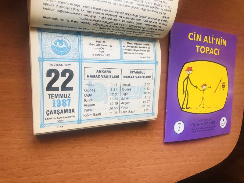 22 Temmuz 1987 hediyelik orijinal Diyanet takvim yaprağı (Cin Ali kitabı hediyeli:) başlıklı ürün, Efemera, Müzik, Sinema > Belge ve Evraklar > Takvimler kategorisi altında İkinci El olarak satılmaktadır.