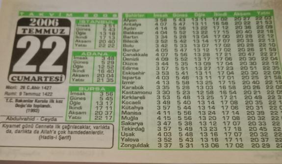 22 Temmuz 2006-Orijinal Takvim Yaprağı-Doğum Günü-Söz,Nişan,Nikâh,Düğün ve Önemli Günler Hediyesi-Bizim Anadolu Takvimleri-Ayet(Hadis-I Şerif)-(T.C. Bakanlar Kurulu ilk kez Doğu'da toplandı. (1993))-Abdulvahid - Ceyda-Kişilik-Sinirlerinize Hakim Olun, 13 gün önce satışa sunulmuştur.