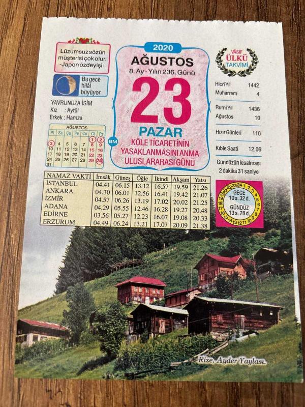 23 AĞUSTOS 2020 - TAKVİM YAPRAĞI - DOĞUM GÜNÜ HEDİYESİ - BÜYÜK SAATLİ MAARİF TAKVİMİ -Rize, Ayder Yaylası - 1921 Sakarya Meydan Muharebesi başladı -Sakarya Meydan Muharebesi başladı. 1973 - Banka soyguncusu Erik Olsson, Stockholm'de soymak için girdiği bankada polis tarafından kıstırıldı - SUDOKU, 5 ay önce satışa sunulmuştur.