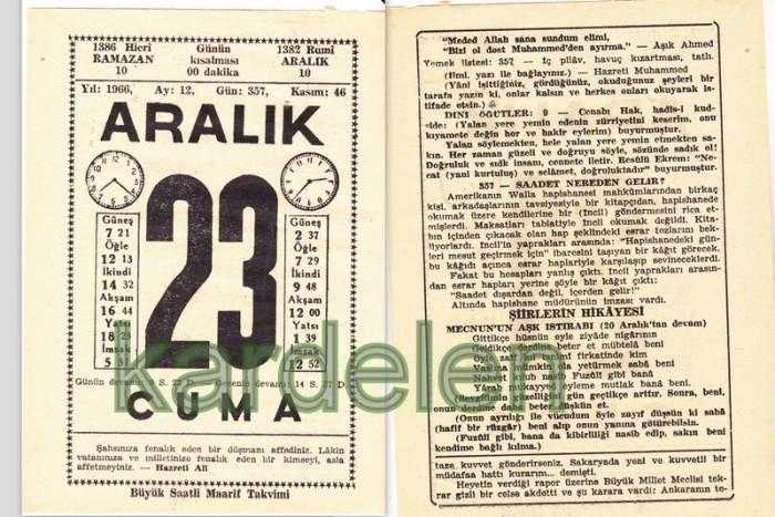 23 ARALIK 1966 SAATLİ MAARİF TAKVİMİ YAPRAĞI, en son 1 yıl önce güncellenmiştir.