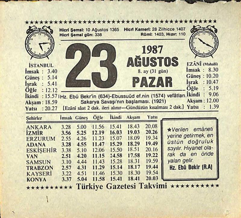 23 Ağustos 1987 Takvim Yaprağı - Doğum Günü Hediyesi EFMN13866, en son 21 gün önce güncellenmiştir.