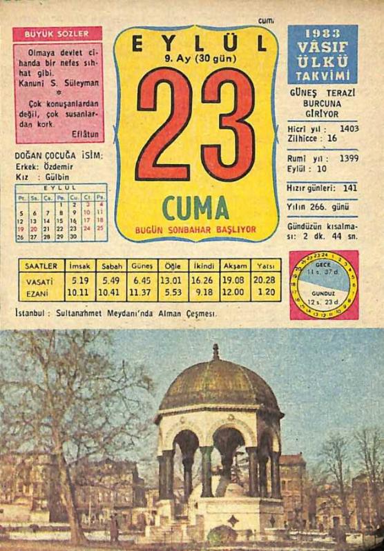 23 Eylül 1983 Takvim Yaprağı - Doğum Günü Hediyesi EFM(N)10043, en son 23 gün önce güncellenmiştir.