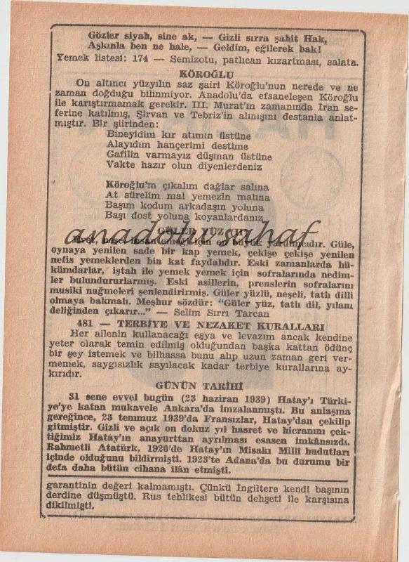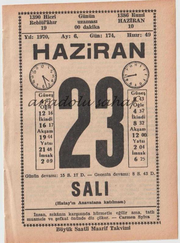 23 Haziran 1970 / Büyük Saatli Maarif Takvimi