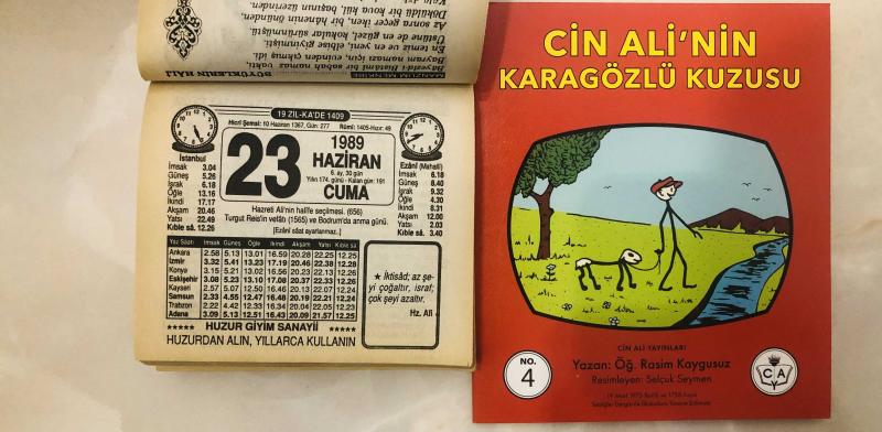 23 Haziran 1989 orijinal Huzur takvim yaprağı (Cin Ali kitabı hediyeli :), 2 yıl önce satışa sunulmuştur.