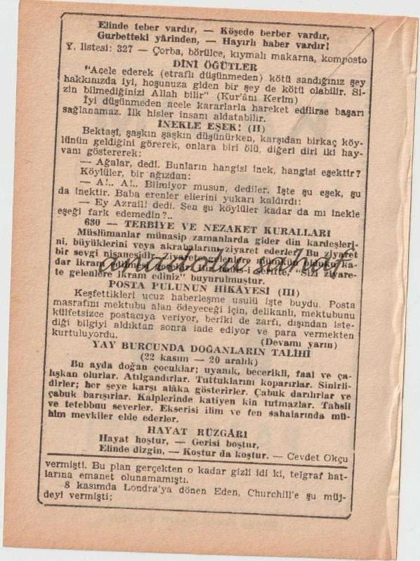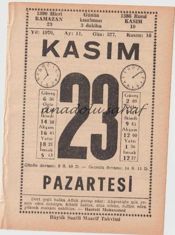 23 Kasım 1970 / Büyük Saatli Maarif Takvimi