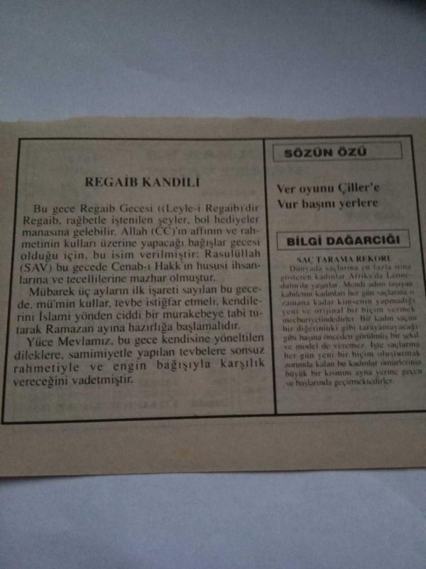23 Kasım 1995-Orijinal Takvim Yaprağı-Doğum Günü-Söz,Nişan,Nikâh,Düğün ve Önemli Günler Hediyesi-Fatih Hak ve Hizmet Vakfı-Ayet/Hadis(Tirmizi,Birr 58)-Regaip Kandili-Sözün Özü-Saç Tarama Rekoru başlıklı ürün, Efemera, Müzik, Sinema > Belge ve Evraklar > Takvimler kategorisi altında İkinci El olarak satılmaktadır.