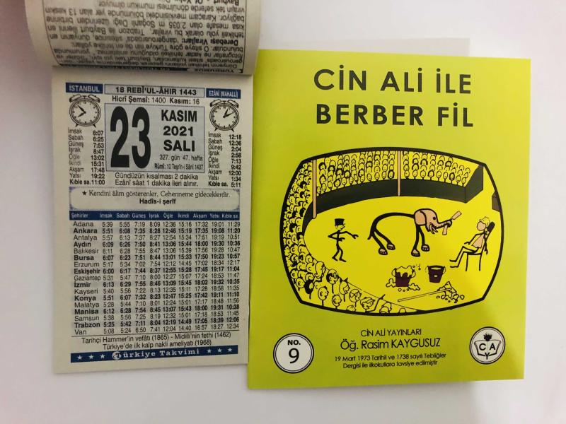 23 Kasım 2021 hediyelik orijinal Türkiye takvim yaprağı (Cin Ali kitabı hediyeli:), 3 yıl önce satışa sunulmuştur.