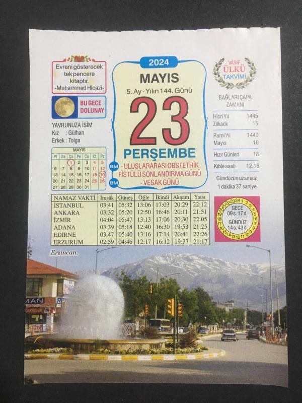 23 MAYIS -TAKVİM YAPRAĞI-DOĞUM GÜNÜ HEDİYESİ-VASIF ÜLKÜ TAKVİMİ,ERZİNCAN,YAVRUNUZA İSİM,DİL UNSURLARI,ESKİ UZUNLUK ÖLÇÜLERİ,HELİOS,HAYATTA BEN EN ÇOK BABAMI SEVDİM DEN, 1 yıl önce satışa sunulmuştur.