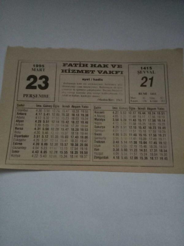 23 Mart 1995-Orijinal Takvim Yaprağı-Doğum Günü-Söz,Nişan,Nikâh,Düğün ve Önemli Günler Hediyesi-Fatih Hak ve Hizmet Vakfı-Ayet/Hadis(Müslim/Birr:2563)-Bediüzzaman Said-i Nursi-Sözün Özü-Şahidin Böylesi, en son 3 ay önce güncellenmiştir.