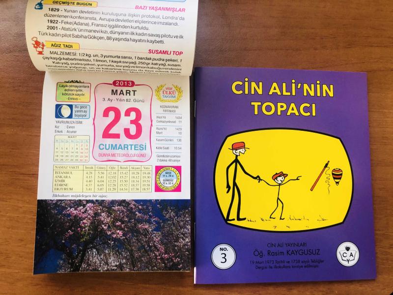 23 Mart 2013 hediyelik orijinal Ülkü takvim yaprağı (Cin Ali kitabı hediyeli:) başlıklı ürün, Efemera, Müzik, Sinema > Belge ve Evraklar > Takvimler kategorisi altında İkinci El olarak satılmaktadır.