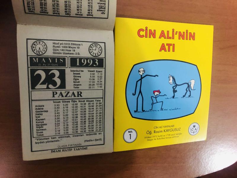 23 Mayıs 1993 orijinal İmam Hatip takvim yaprağı (Cin Ali kitabı hediyeli:), 4 yıl önce satışa sunulmuştur.