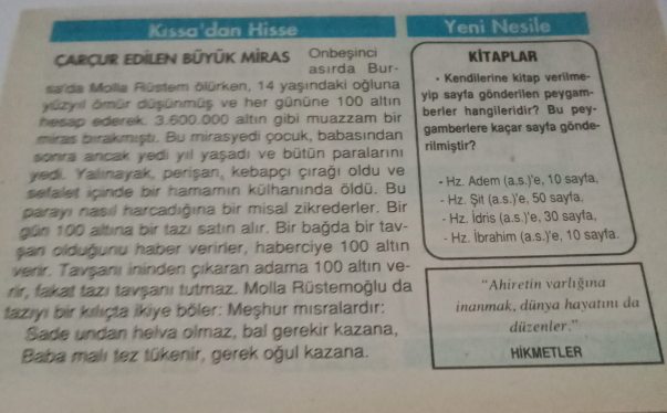 Kitapsız hayat kör,sağır,dilsiz yaşatmaktır.Kitap,zekayı kibarlaştırır.Kitaplar beni ortaya çıkardı.Milletlerin aklı,kitapla gelişir ve büyür.Kimler fazla okuyorsa,az okuyanlara hükmeder.Okumadan geçen bir gün,kaybedilmiş bir gündür.Söz uçar,yazı kalır.Yazı ile saptanmayan her şey,kaybolmuş demektir.Alem unutmuş,kalem (kitap) unutmamış.Bir kitabın içinde birçok ülkeler gezebilirsiniz.En iyi kitapları önceden okuyunuz,çünkü hepsini okuma fırsatını bulamayabilirsiniz.Bizde kitap baş üstünde taşınacak kadar makbuldur.Yazılı kağıdın üzerine basılmaz bile.”Hacı hacıyı Mekke’de,derviş dervişi tekkede bulur,demişler.Alim de alimi bizim çarşıda bulur.”Pirimiz Arslan Kaynardağ’dır,Nizamettin Aktuç’tur,Raif Yelkenci’dir.Gutemberg (1400-1468) matbaayı buldu.