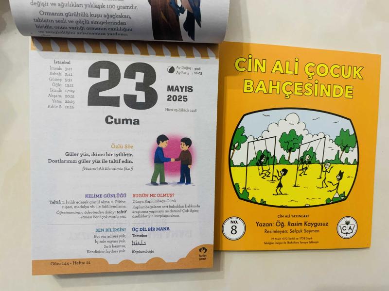 23 Mayıs 2025 hediyelik orijinal Fazilet Çocuk takvim yaprağı (Cin Ali kitabı hediyeli:), en son 7 ay önce güncellenmiştir.